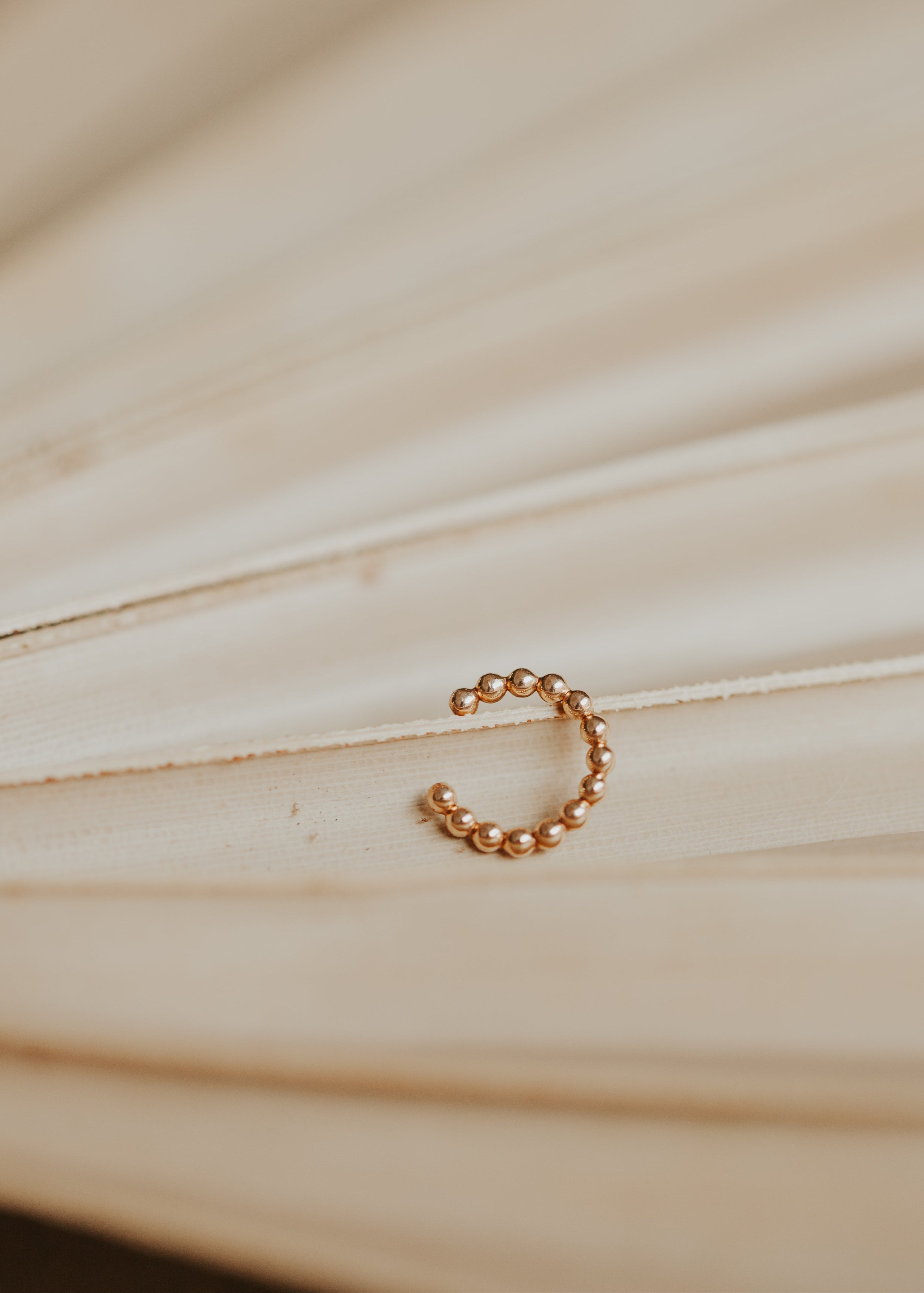 • **Please note: Beaded wire is extra delicate because of the small amount of metal between each bead. Avoid "opening" the cuff. Put the cuff on by sliding over your cartilage (squeezing your cartilage if necessary) and pinch closed gently if a tighter fit is required.