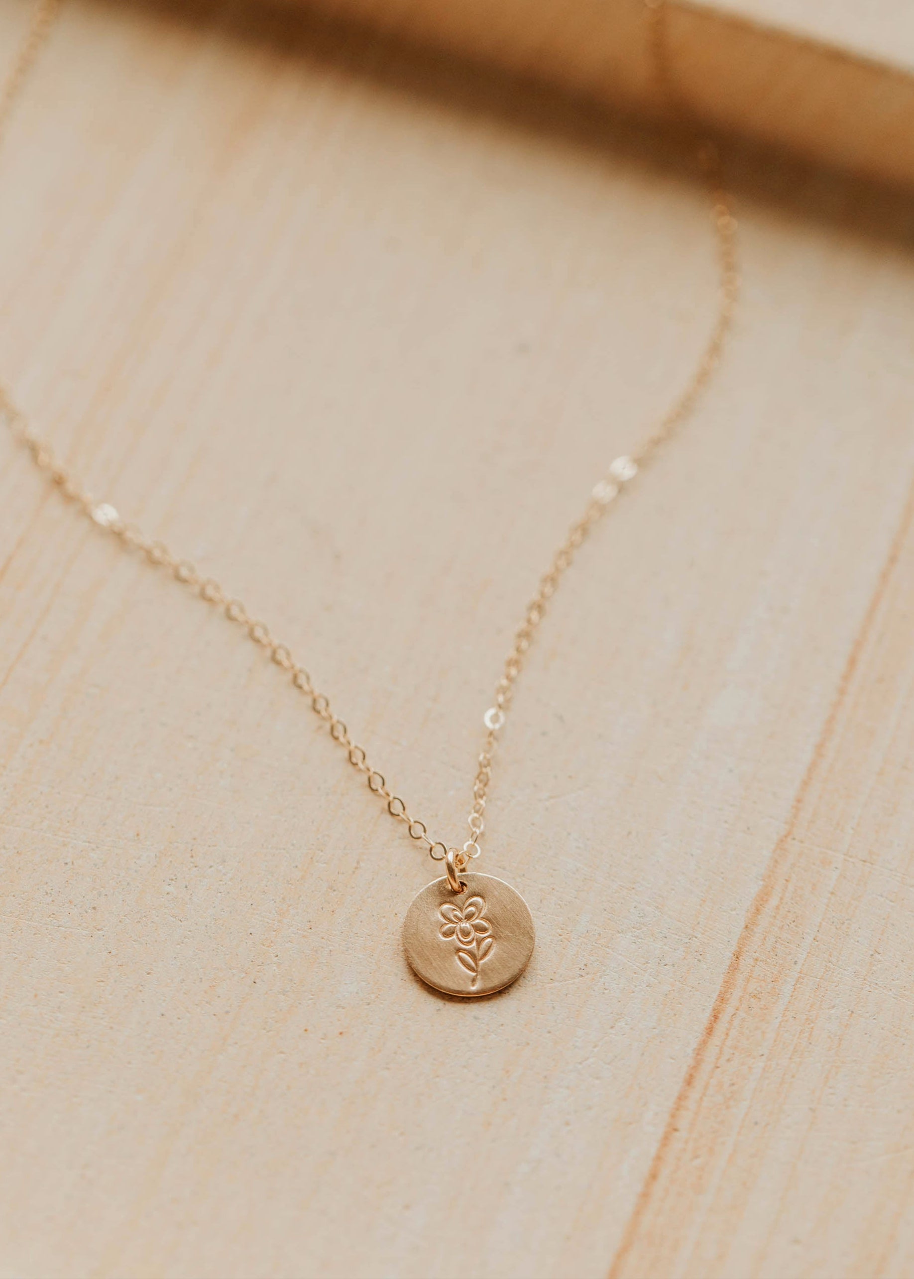 • Hand-drawn birth flower pendant on our delicate chain or zoey chain.