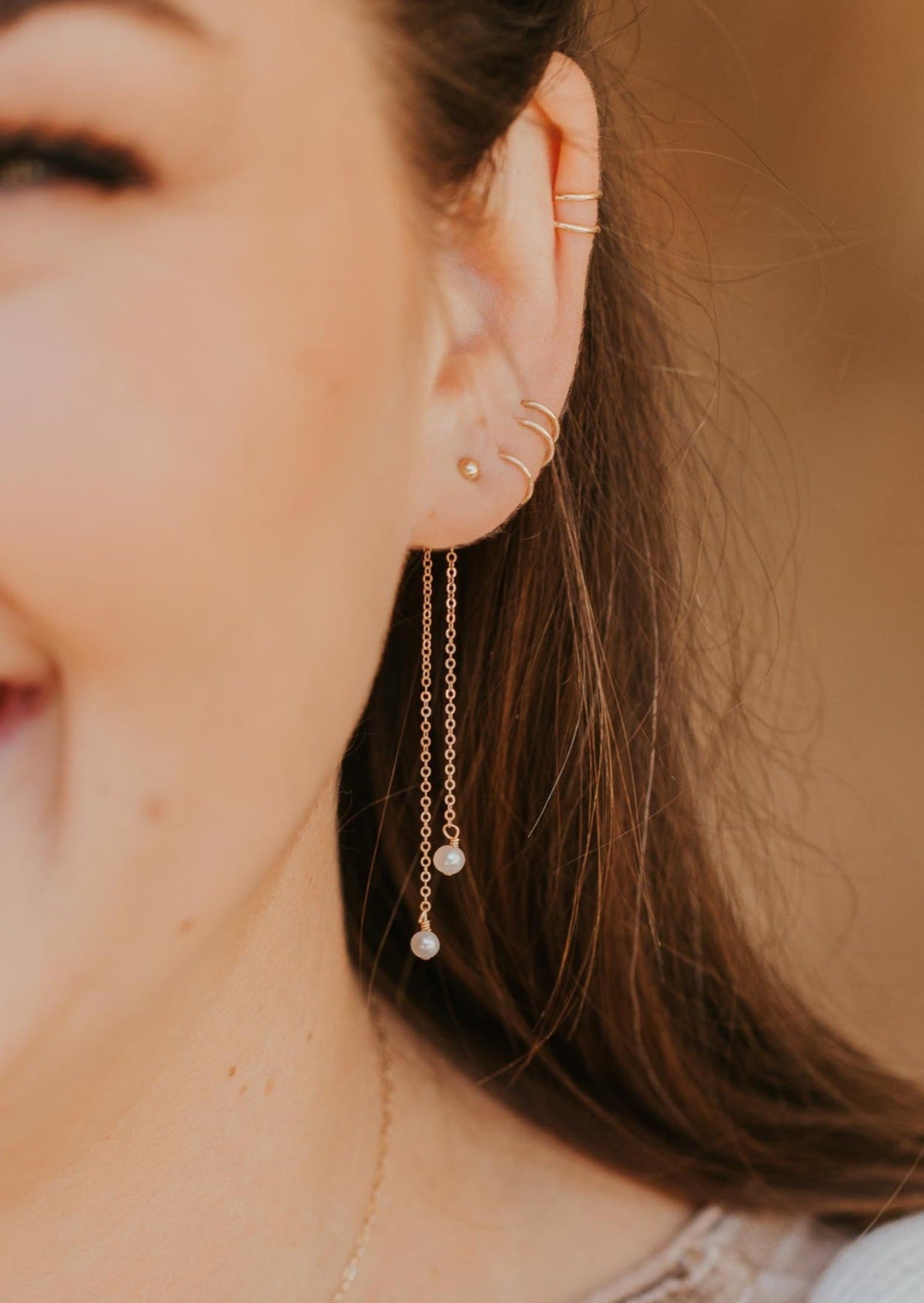 Two freshwater pearls attached to two different lengths our Isla Chain creating a cascading effect.
