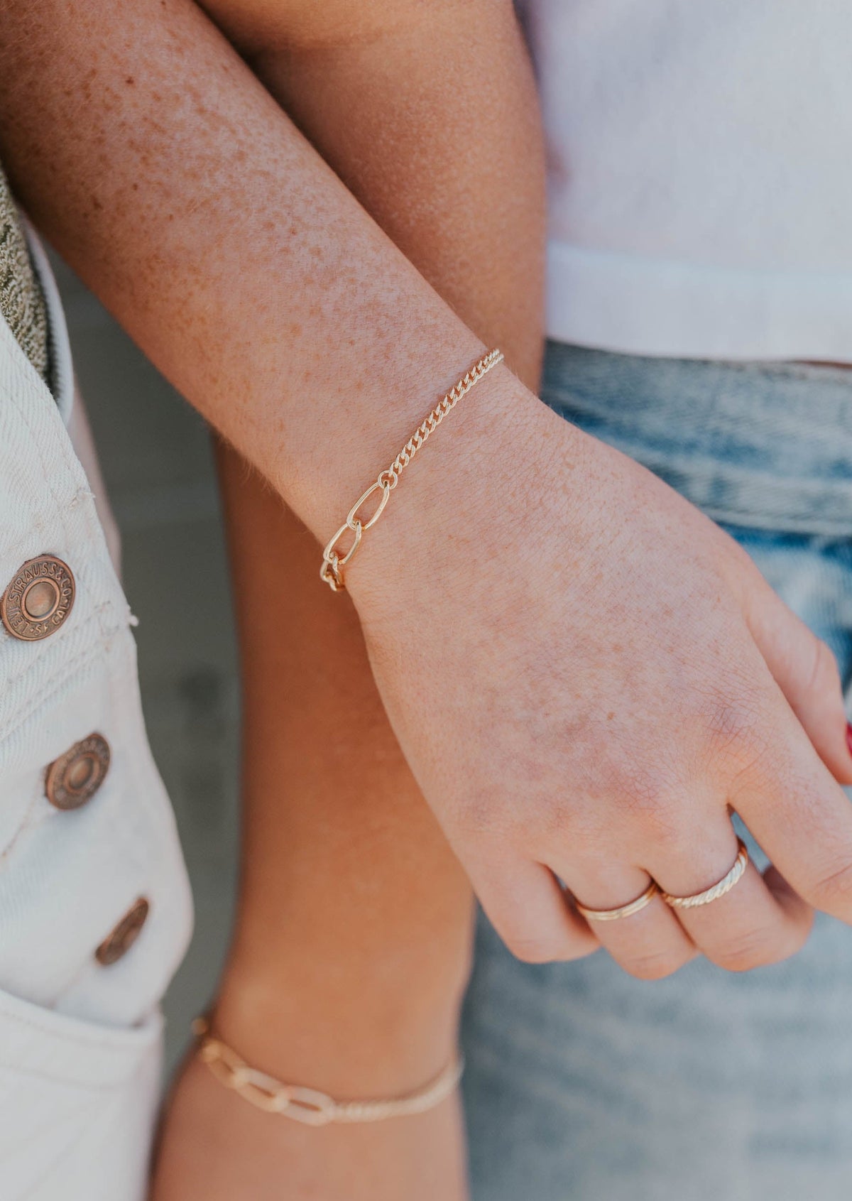 Our chain bracelets measure 6.5” with an additional .5” of extender chain making them adjustable from 6.5” - 7". To determine your preferred length, take a piece of string, wrap it around your wrist to the desired length, and measure that length using a ruler or measuring device. Or check the length of a bracelet you already own - measuring from end to end.