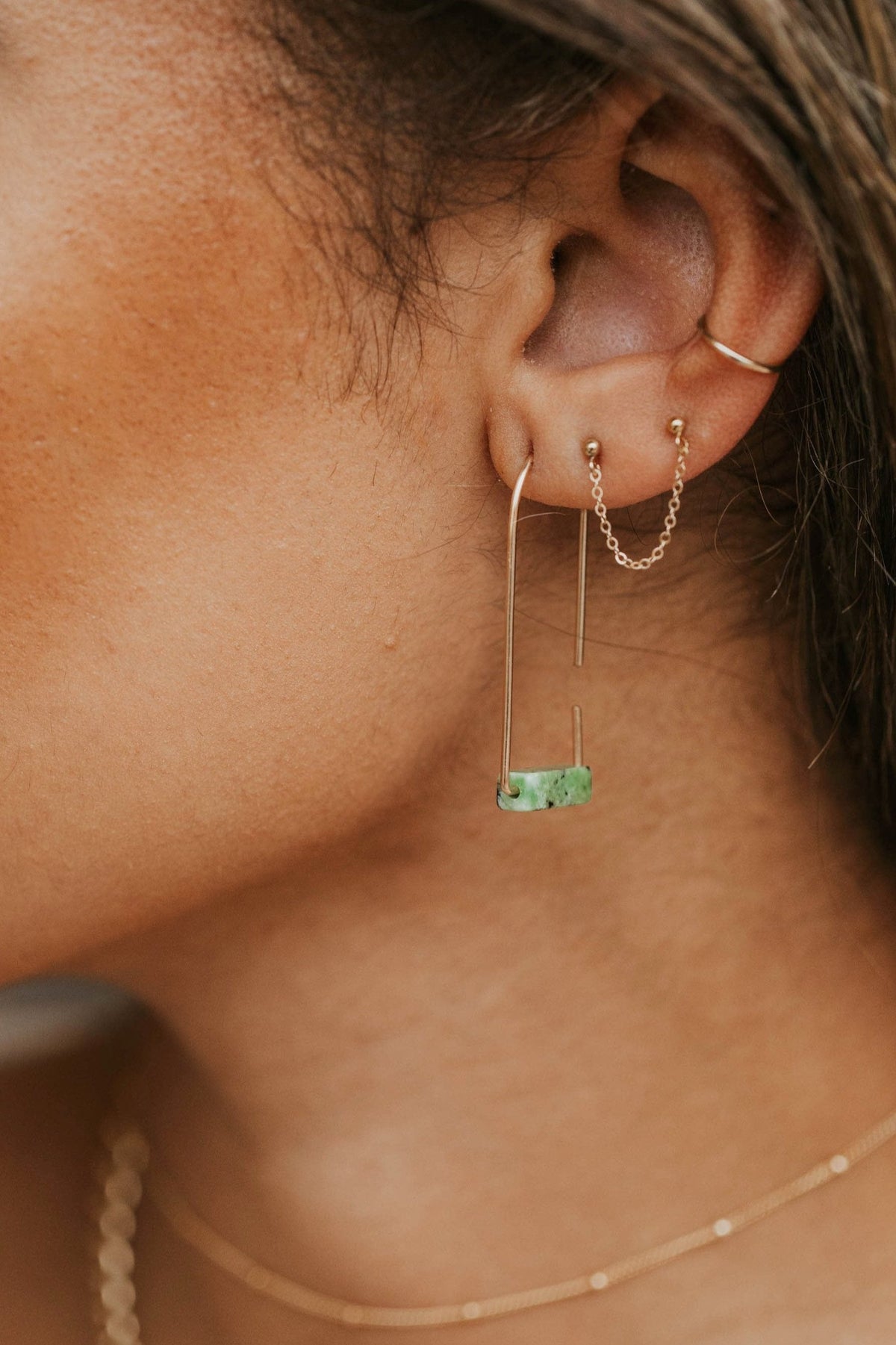 • The gauge of these earrings is 18g which is slightly thicker than the average ear wire. They will fit most piercings but may be uncomfortable for very sensitive ears.