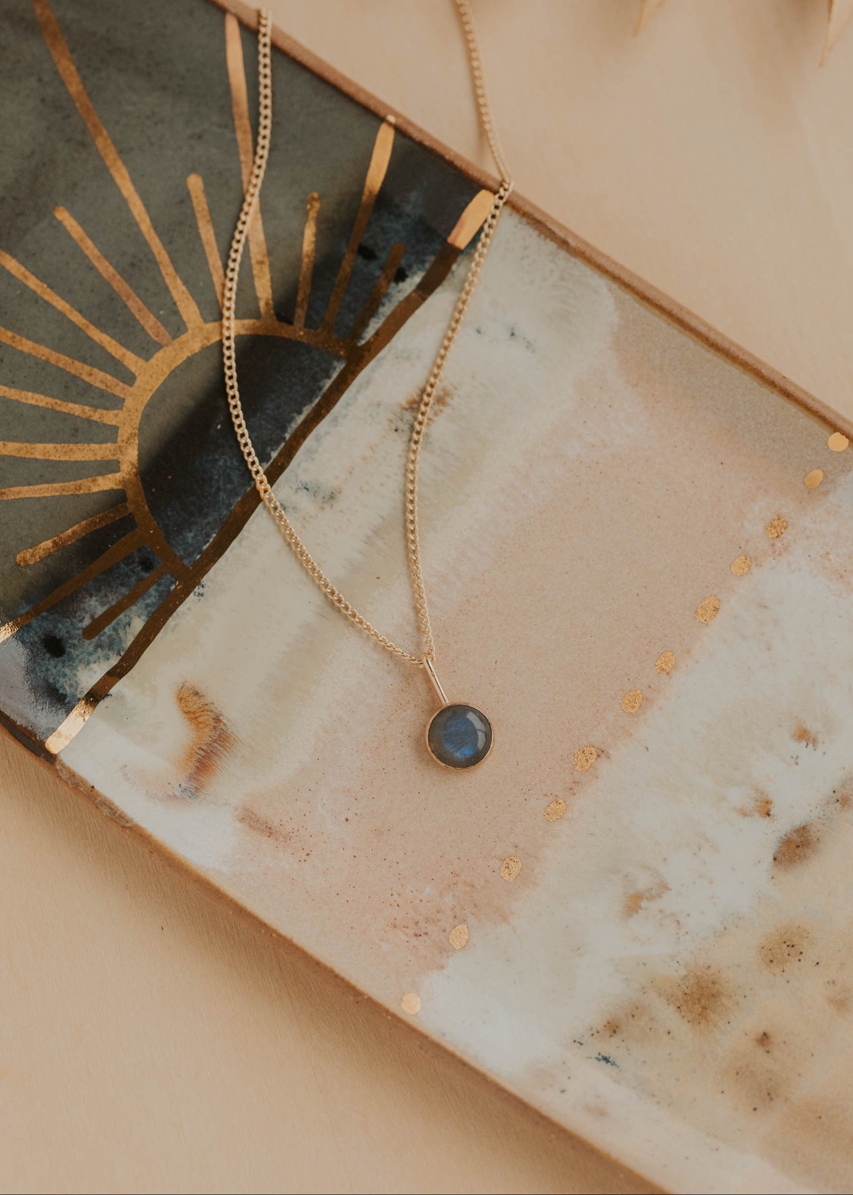 A labradorite pendant that feels like wearing a piece of the night sky, complete with its own celestial light show.