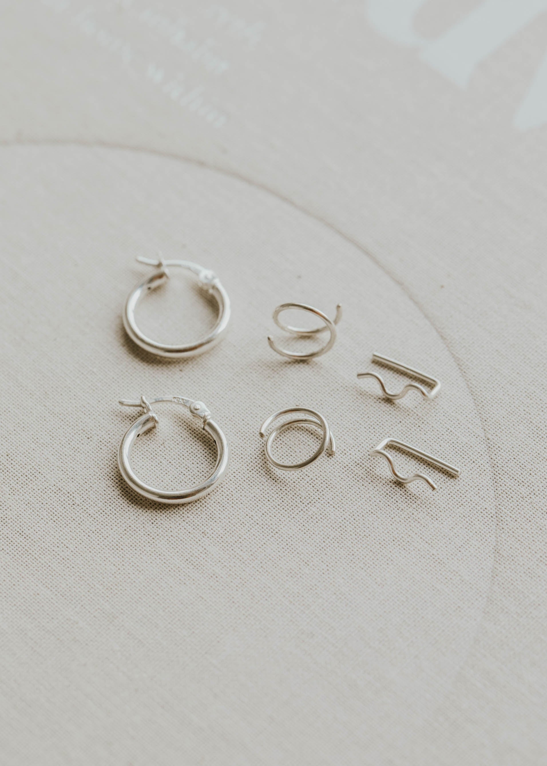 Bundle + save by getting three best sellers at once! The Tiny Wave Ear Climbers, Tiny Twists, and Bold Hoops are Hello Adorn fan favorites that'll make your ear stack dreams come true. "But what if I only have one piercing?!" Well... now you have OPTIONS babyyyy. And while you're at it, add a pair of charms to your cart to complement those Bold Hoops and take you ear party to an even wilder level.