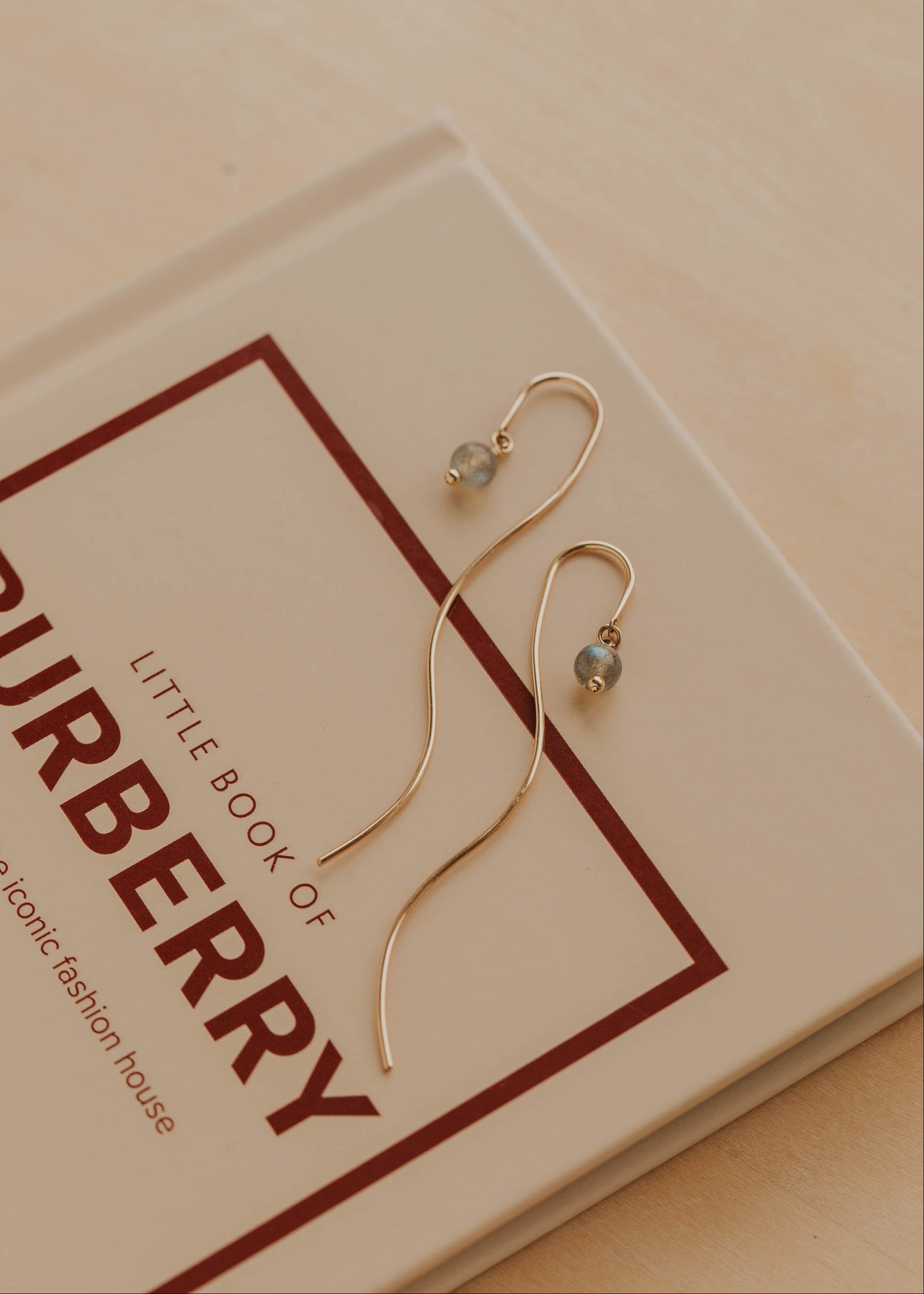 Graceful threader earrings with a labradorite stone drop that's elegant enough for special occasions yet easy enough for everyday. The flowing design moves beautifully as you do.