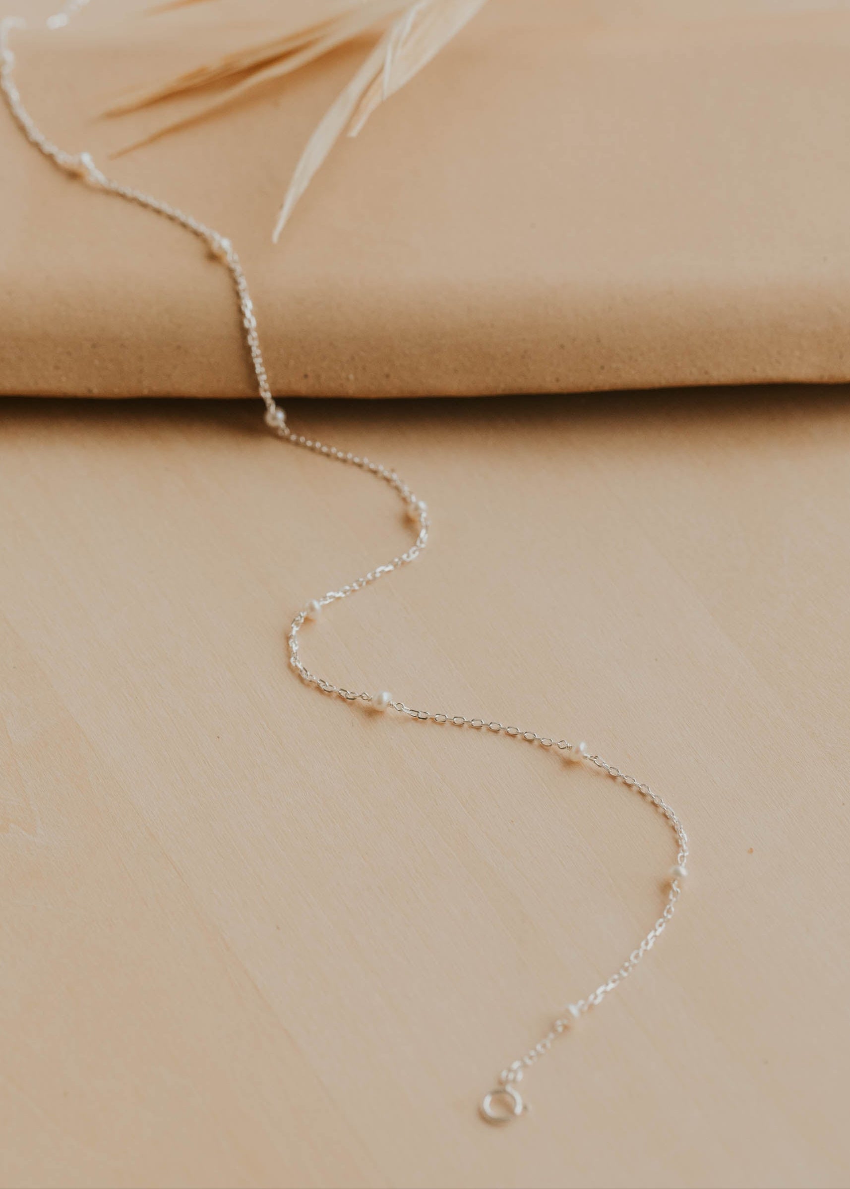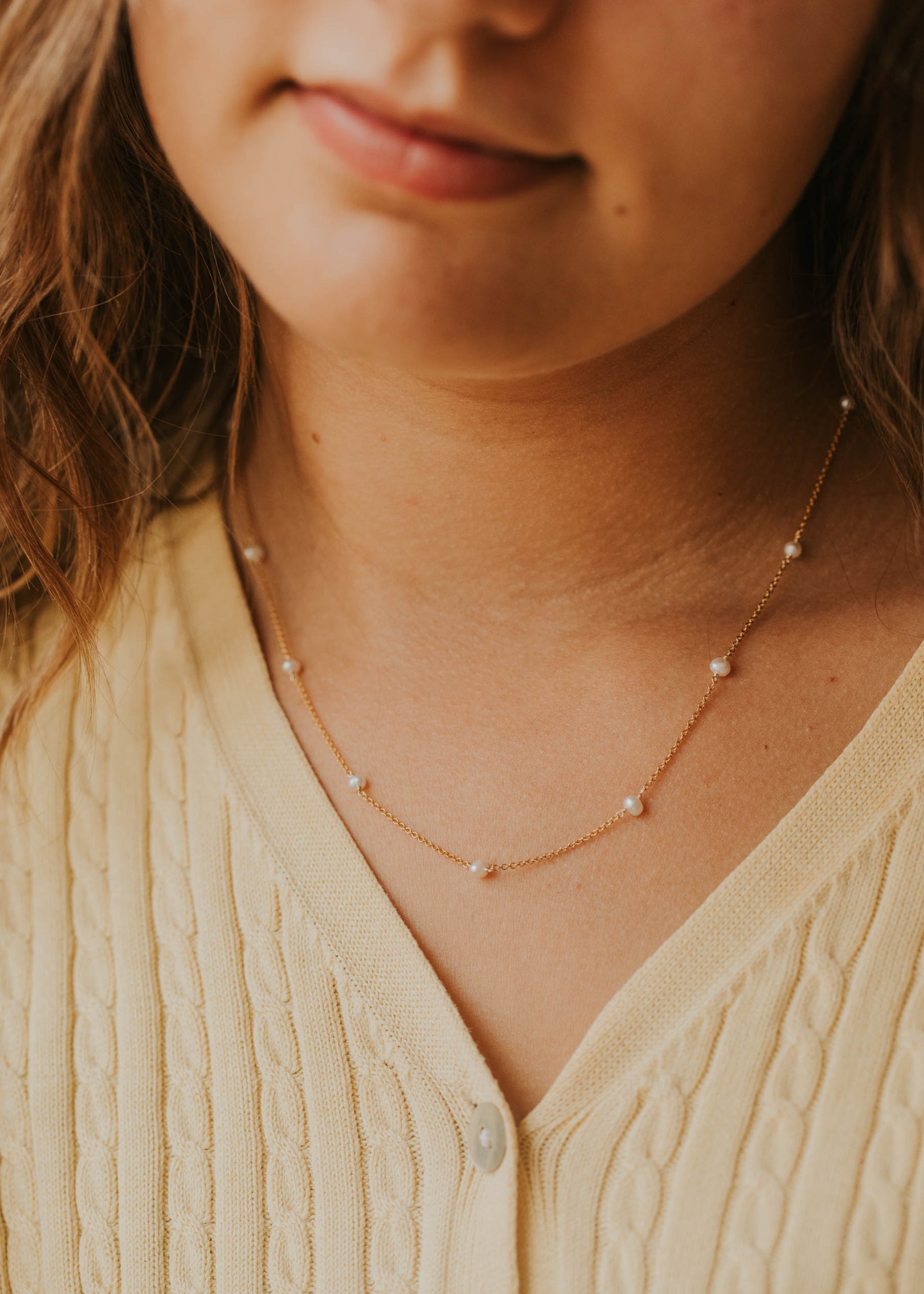 The Pearl Chain's younger sister! These tiny freshwater pearls are smaller than our classic pearls, creating the most delicate dotted line along your neckline.