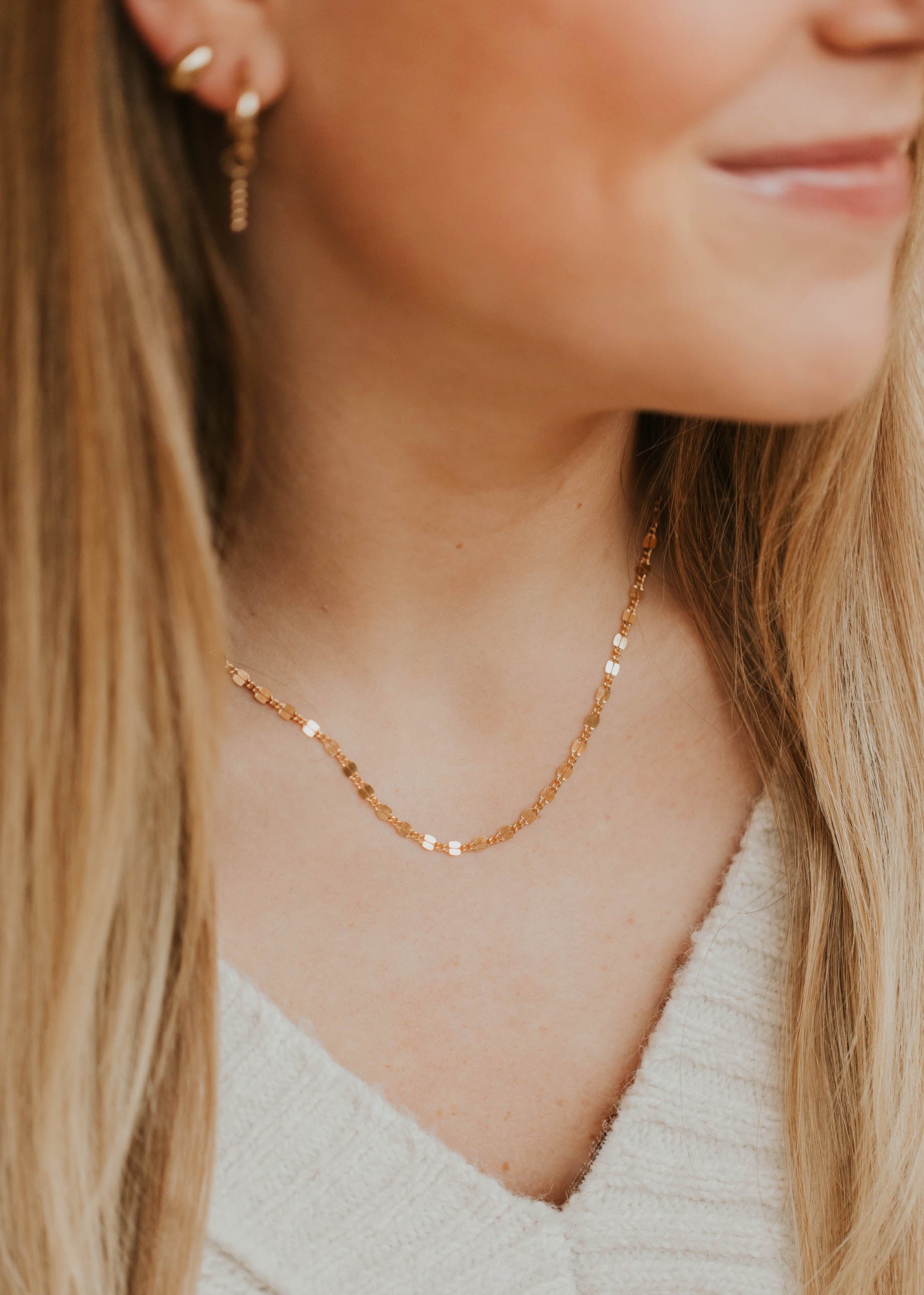 Delicate beaded links create subtle texture and light-catching beauty. The Lola Chain is your foundation piece – perfect for layering or wearing solo.