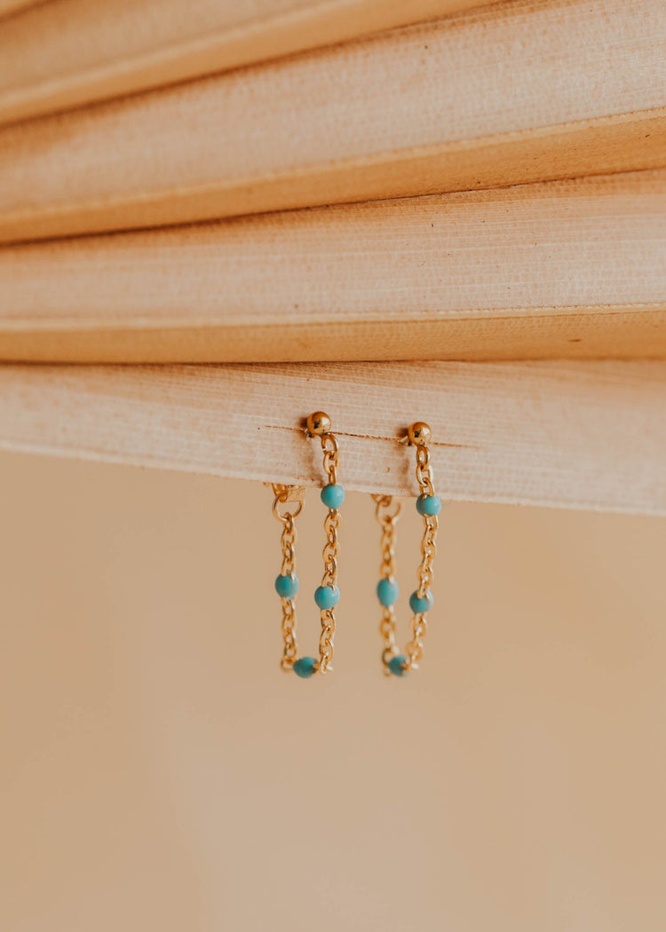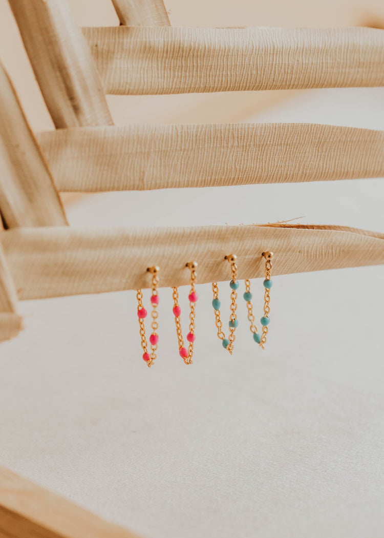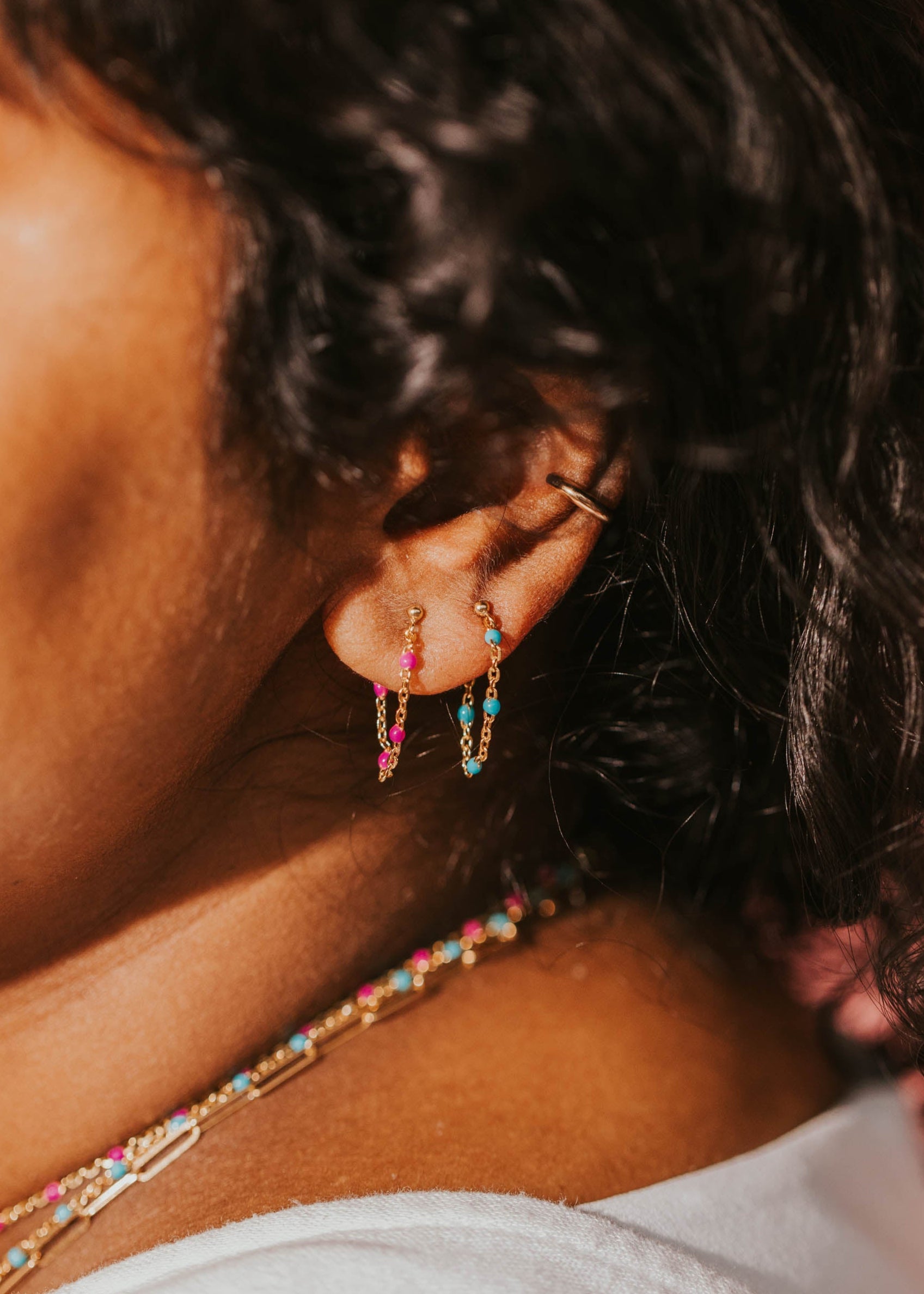 The finishing touch your summer wardrobe is begging for, featuring pops of tiny pink or turquoise enamel accents. Tiny but mighty, it's the earring equivalent of the perfect beach playlist.