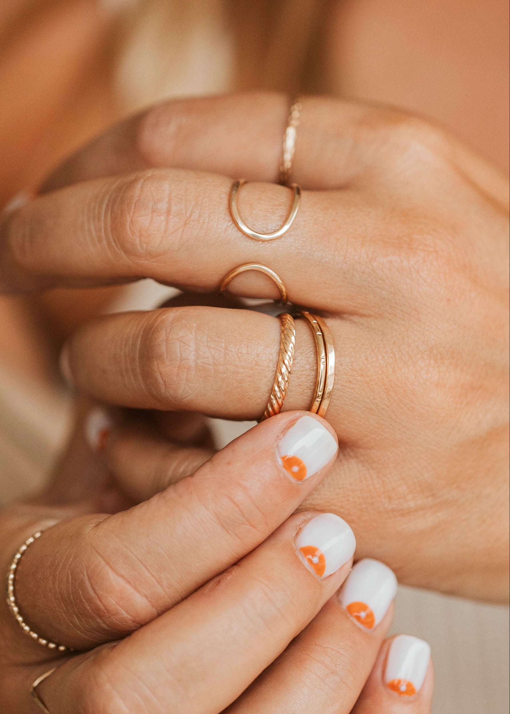 • If you’re stacking rings on one finger, we recommend rings that are within a half size of one another.