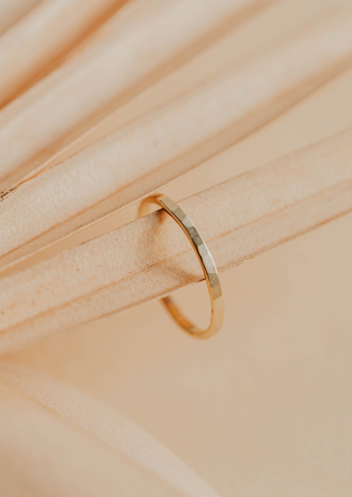 • Two 1mm bands (hammered flat) that meet on the sides—united on top with wire wrapping.