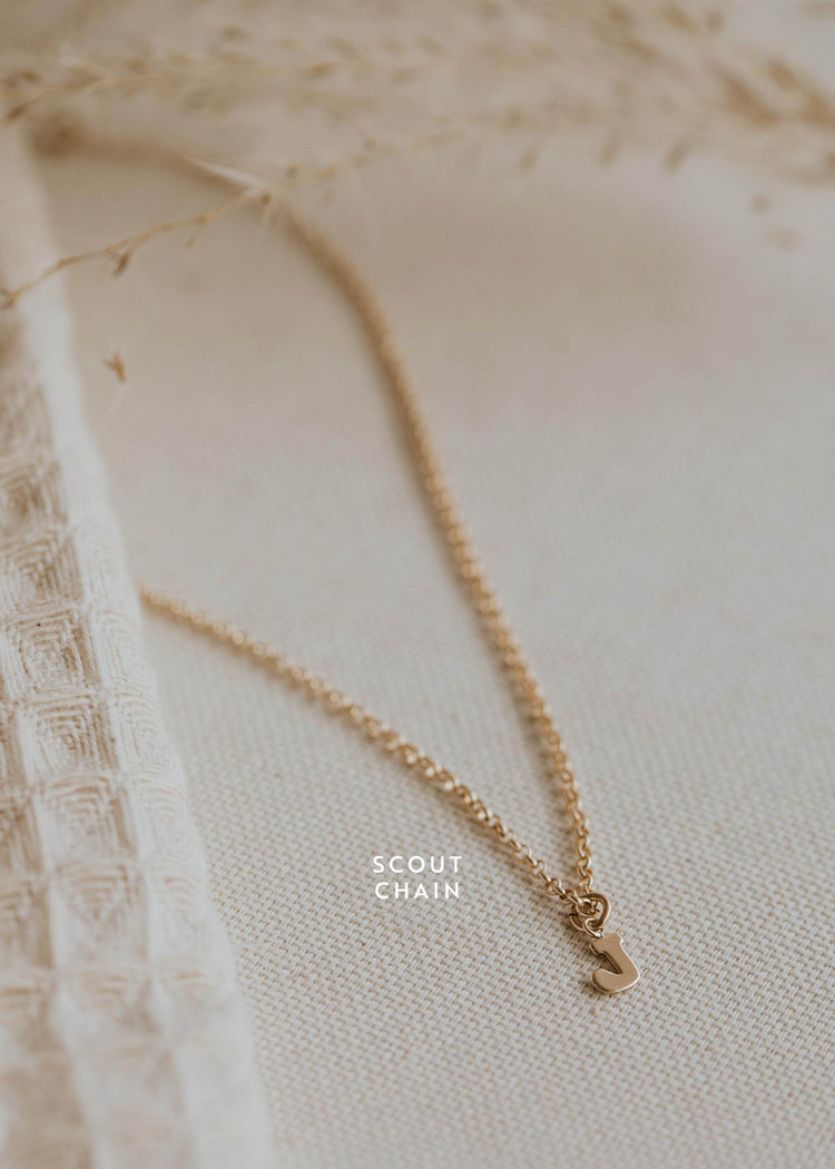 • 8 x 6mm uppercase block letter is suspended from delicate cable or scout chain.