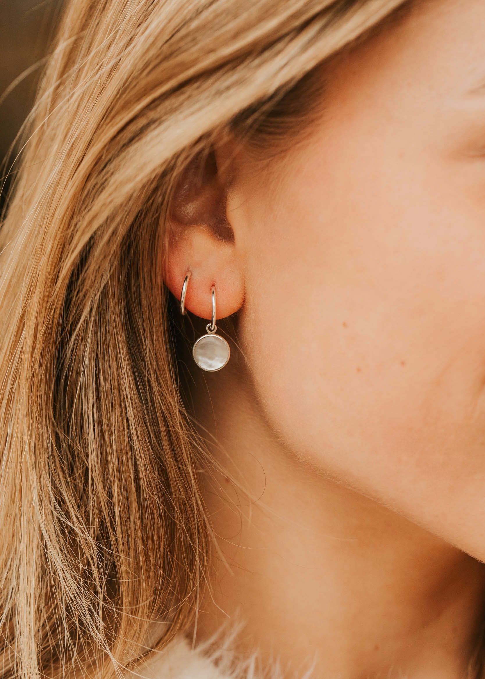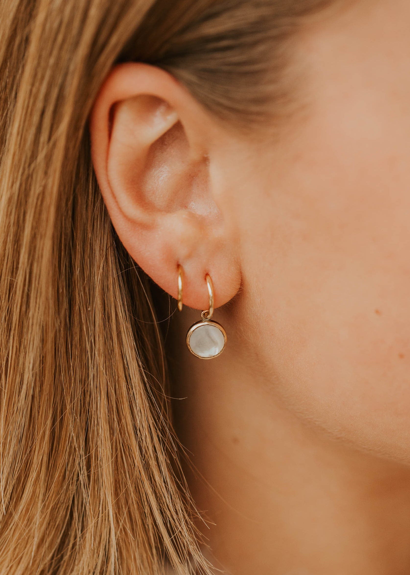 The Mother of Pearl used in these hoops add a captivating allure, offering just the right amount of intrigue to elevate any earring stack.