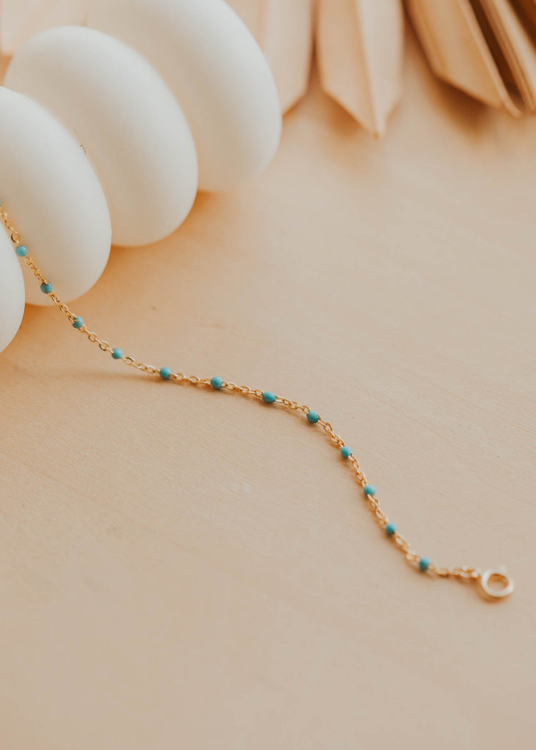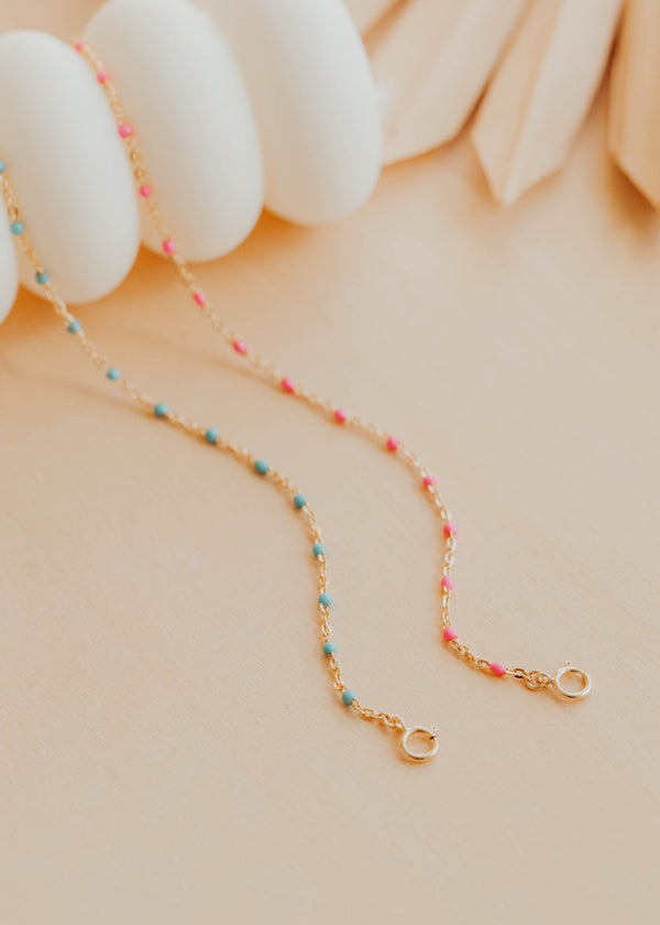 Your wrist is looking for a new friend! This little stunner adds just the right pop of color to your wrist-game rotation, featuring pops of tiny pink or turquoise enamel accents.