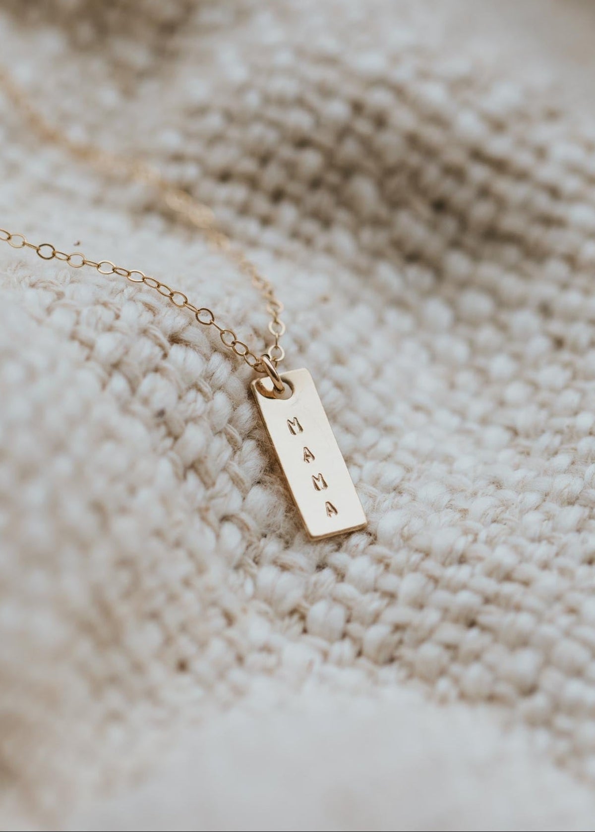 We updated our original Mama Necklace to a shorter more modern bar design and added square pendant add-ons for the initials of your favorites. She’s still simple and minimal and full of very special meaning.