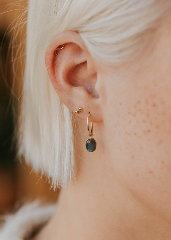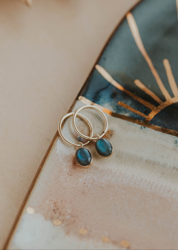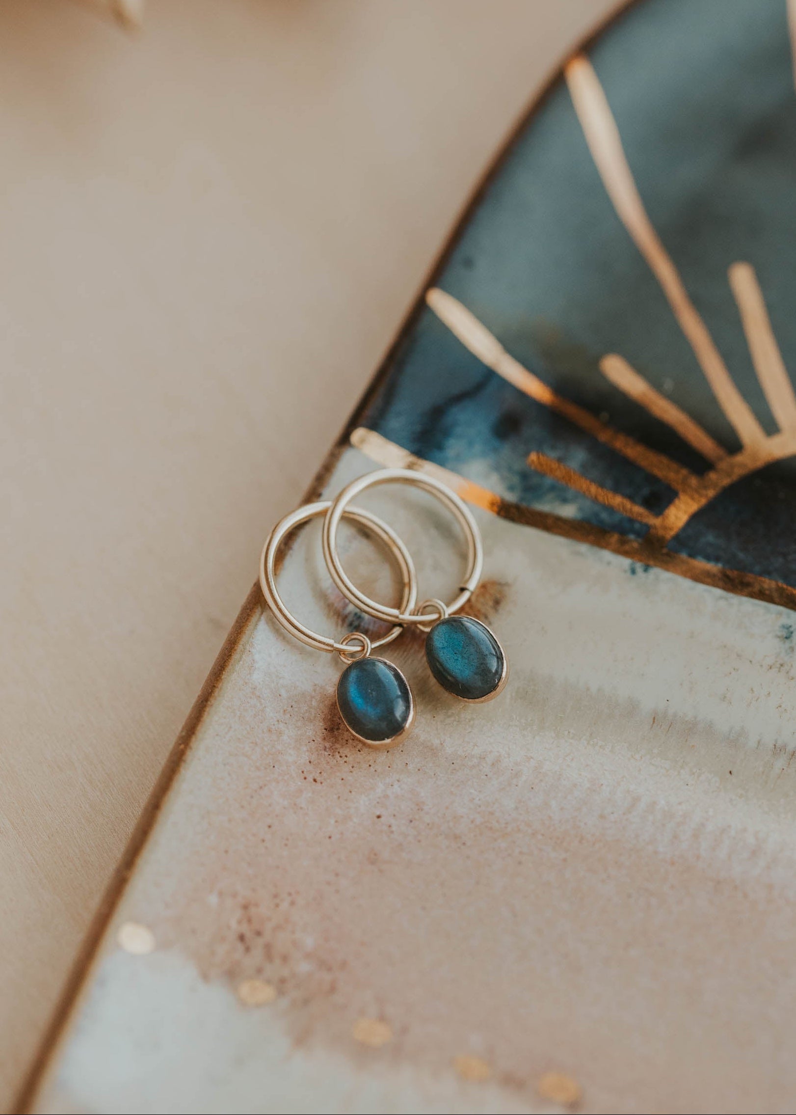 • A 8x6mm labradorite stone on our 14mm Endless Hoops.