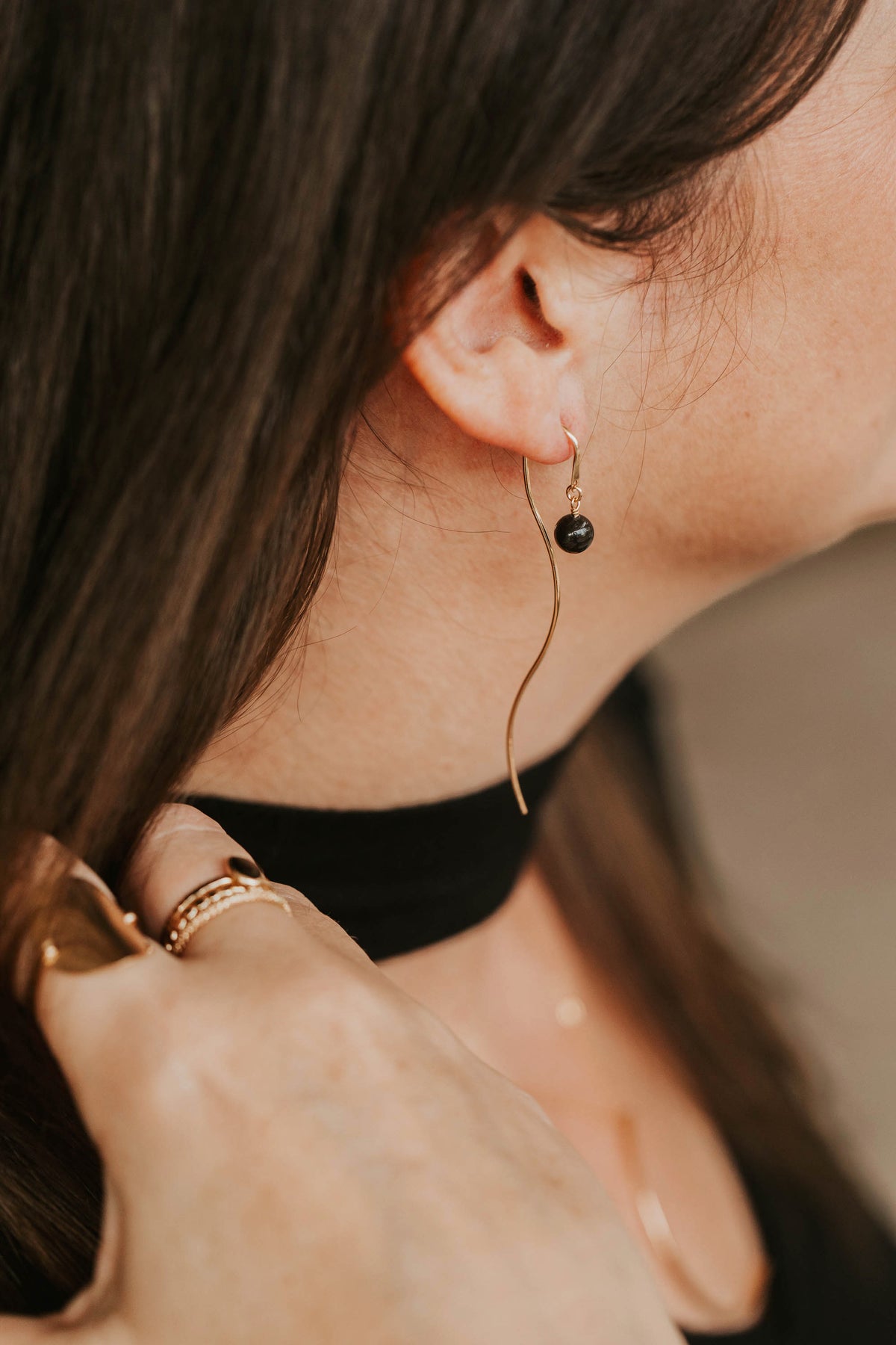 These threader earrings feature a graceful wave finished with a single black onyx bead. Lightweight enough to wear from dusk till dawn, they're the perfect subtle-but-striking addition to any coven... we mean, collection.